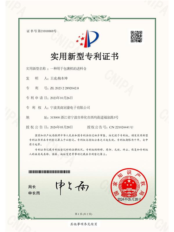 • 實用型專利證書